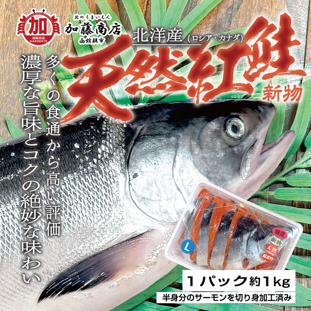 北洋産 天然紅鮭 切身 Lサイズ 1パック(約1kg 半身分)【送料別途】<冷凍> ロシア カナダ 天然物 脂のりと濃厚な旨味 鮮やかな赤色 しっかりとした食感 オメガ3脂肪酸 良質な脂