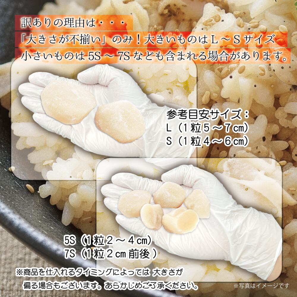 緊急追加!数量限定 訳あり 生食お刺身用 北海道産 ほたて貝柱 大きさ不揃い 大容量1kg【全国送料無料】<冷凍> サイズ不問 玉冷 お徳用 お得